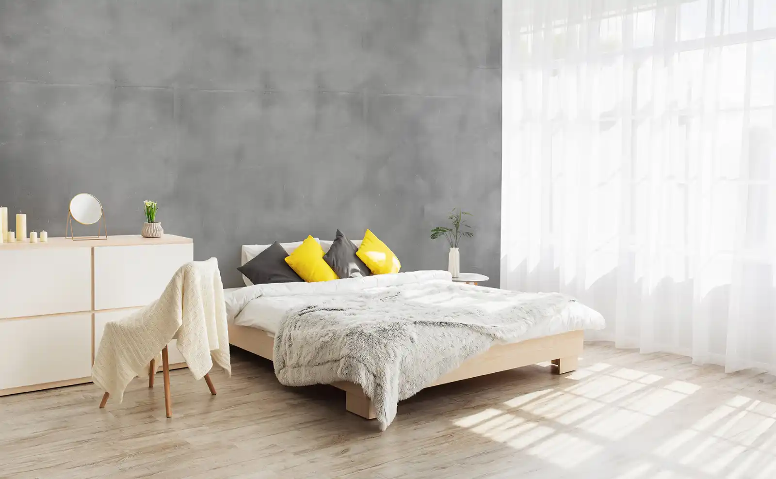 Eine exklusive Wandbeschichtung mit Kalkputz in Betonoptik für Innenräume. Große Farbtonvielfalt und ein breites Spektrum an Strukturmöglichkeiten sowie das Überlasieren mit verschiedenen Materialien ermöglichen verschleierte, ästhetische Effekte mit weichen und vollen Farben.